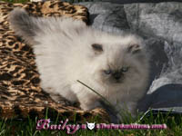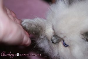 Here is Bailey the second born from Champion Maxi & Coco at 5:35 pm, and weighed 99 grams! Bailey is a lilac lynx point male. Bailey is very playful, and a little character. Bailey loves to be kissed and will roll on his back and want his belly rubbed. Bailey is very affectionate and will look you in the eyes when you talk to him. He is very alert at a young age. Watch a Video Clip of Bailey call “Life of Bailey”!