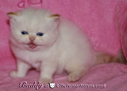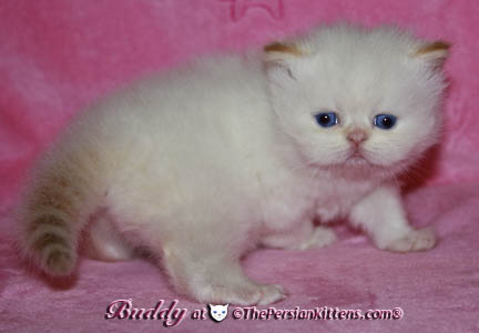 Persian Kitten Buddy is a male Flame Lynx Point Persian Himalayan Kitten. Third born at 9:05