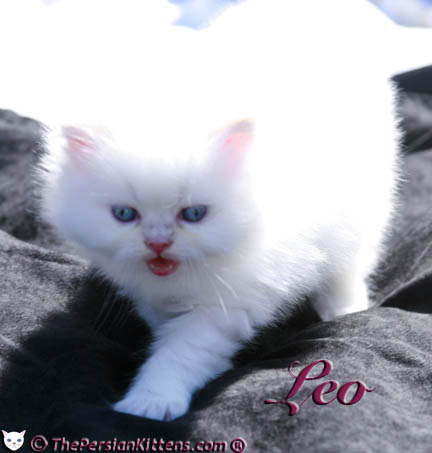 Persian Kittens © Leo’s roar (meow) like a little white lion! It’s almost a Trademark of our kittens they’re all talkative.