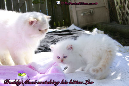 Persian Kittens © Leo’s Daddy CH Maxi always watches his kittens.