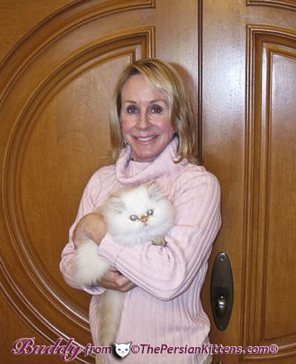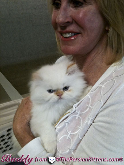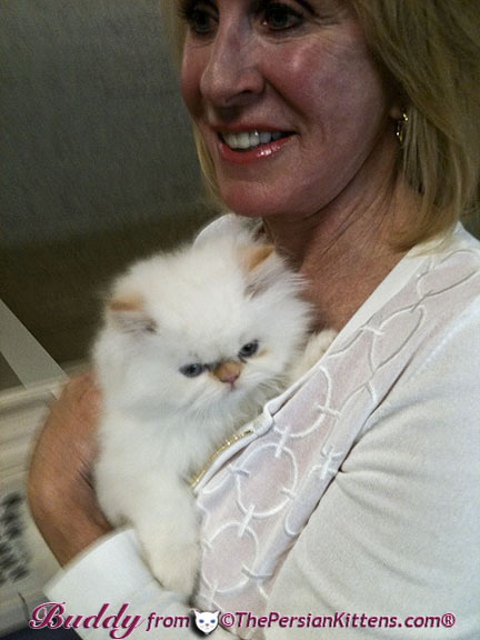 Persian Kitten Buddy looks like he likes his new ‘mommie” Fran!
