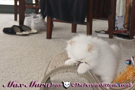 Persian Kitten Bella wants Carlos to wad up a paper towel to make a ball for her to fetch!