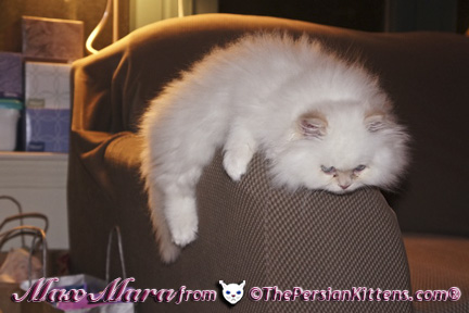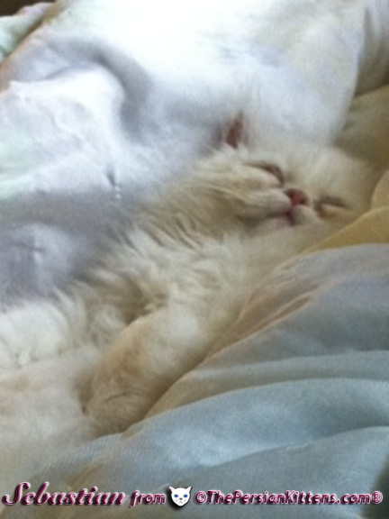 Persian Kitten Beau is very comfy in his new home with Cyrstal: