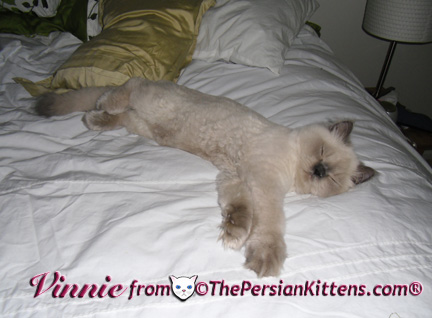 Persian Kitten Buddy is feels at home on Fran’s bed !!!